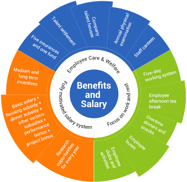 Incentive salary system: Basic salary + house allowance + meal allowance + various subsidies + performance bonus + project bonus + long-term incentives, opportunity for salary adjustment each year.
