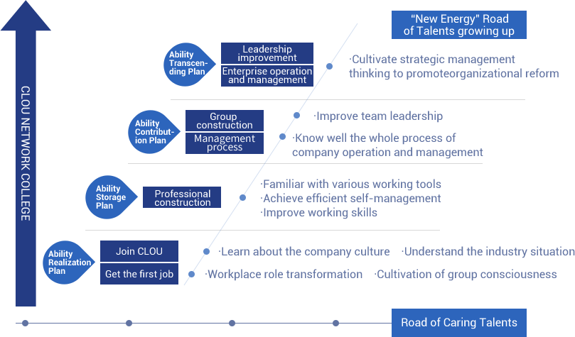 New staff training: CLOU takes care of new staff’s integration to team and growth. Build a communication platform, use online and offline training methods to improve the knowledge and skills of new staff, and accelerate their growth.