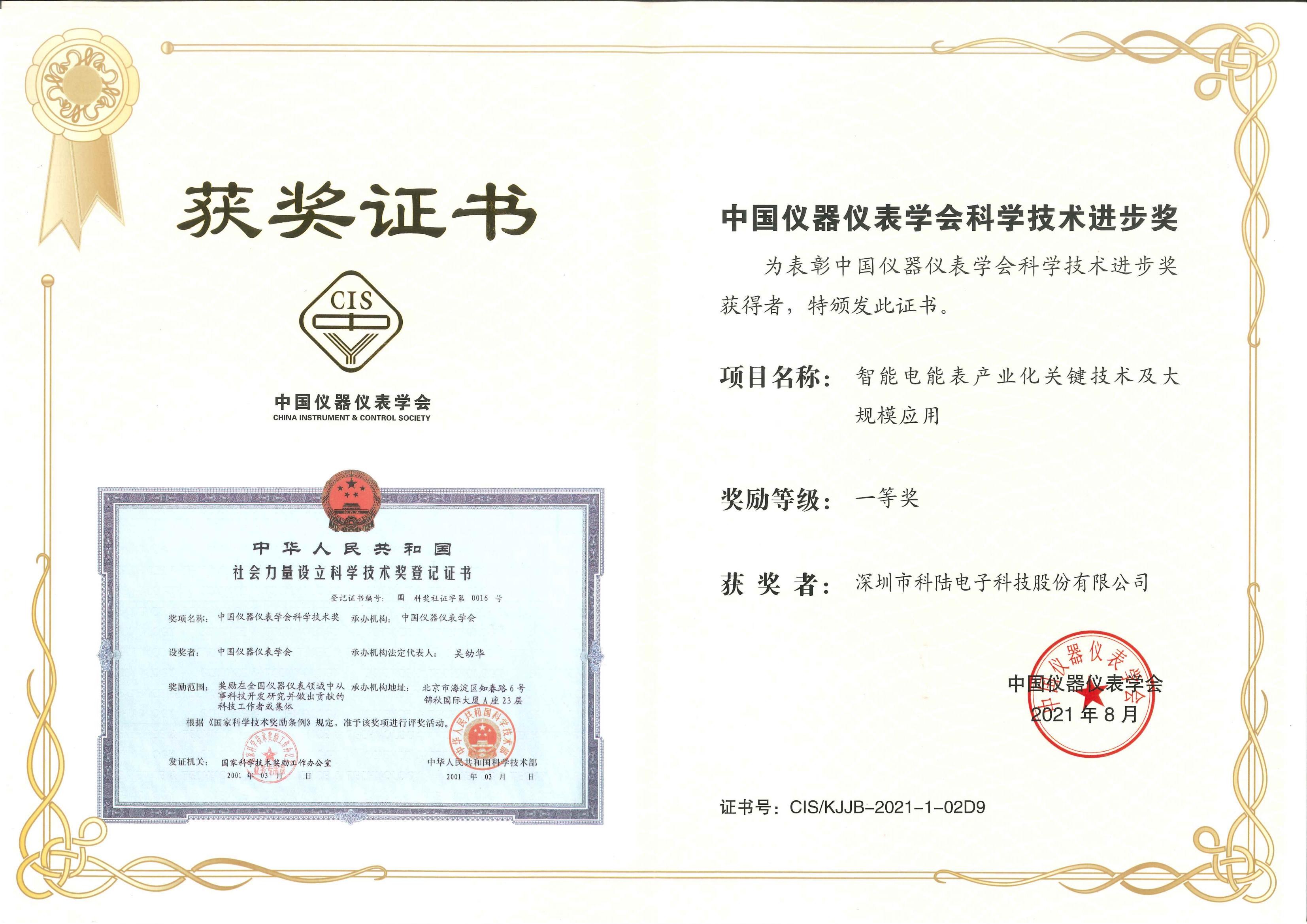 近期,由中國電力科學研究院有限公司牽頭,國家電網有限公司、清華大學、深圳市科陸電子科技股份有限公司等單位聯合開展的“智能電能表產業化關鍵技術及大規模應用”項目,榮膺2021年度中國儀器儀表學會“科學技術進步獎”一等獎。