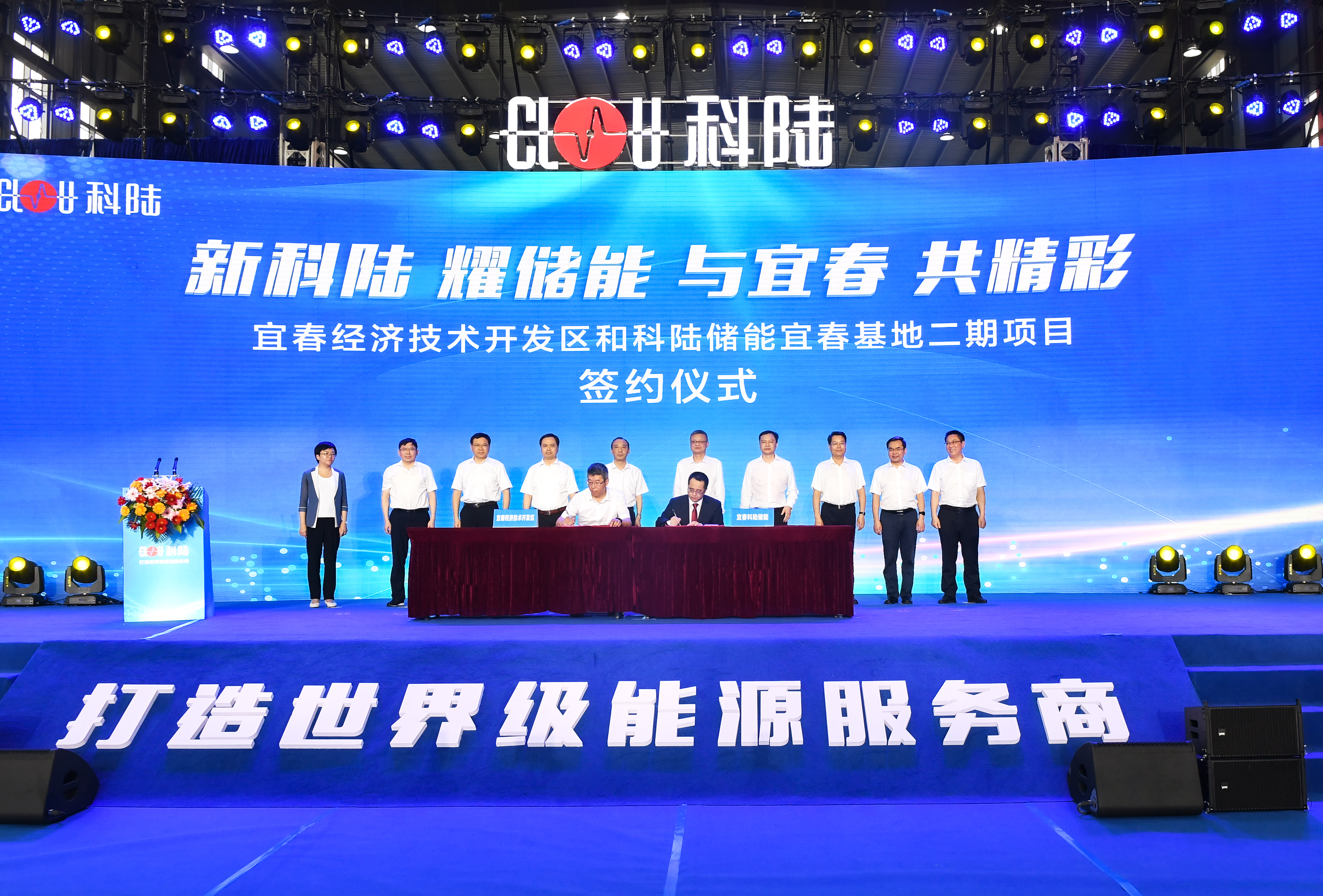 在于秀明、嚴允、胡國斌等領導的共同見證下,科陸公司董事長、總裁劉標與宜春經開區黨工委副書記、管委會主任何敏就項目二期“年產5GWh儲能電池項目”正式簽署《合作框架協議》。