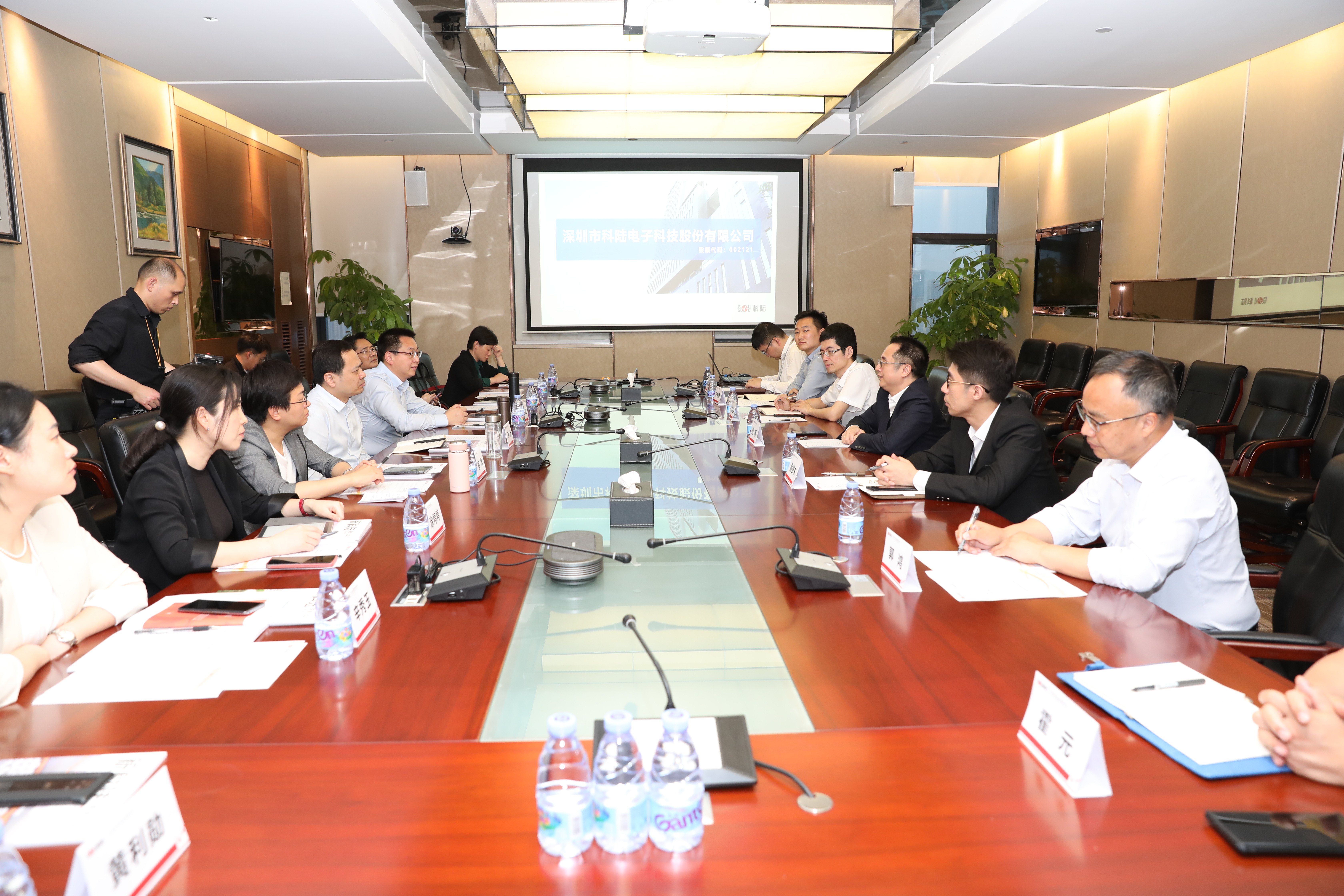 4月19日,江西省宜春市委副書記、市長嚴允一行蒞臨深圳市科陸電子科技股份有限公司(以下簡稱科陸)考察交流。嚴市長一行首先參觀了科陸產業展廳,了解科陸發展歷程、產業布局、應用場景、科技創新、儲能市場拓展等情況,隨后雙方展開座談交流。