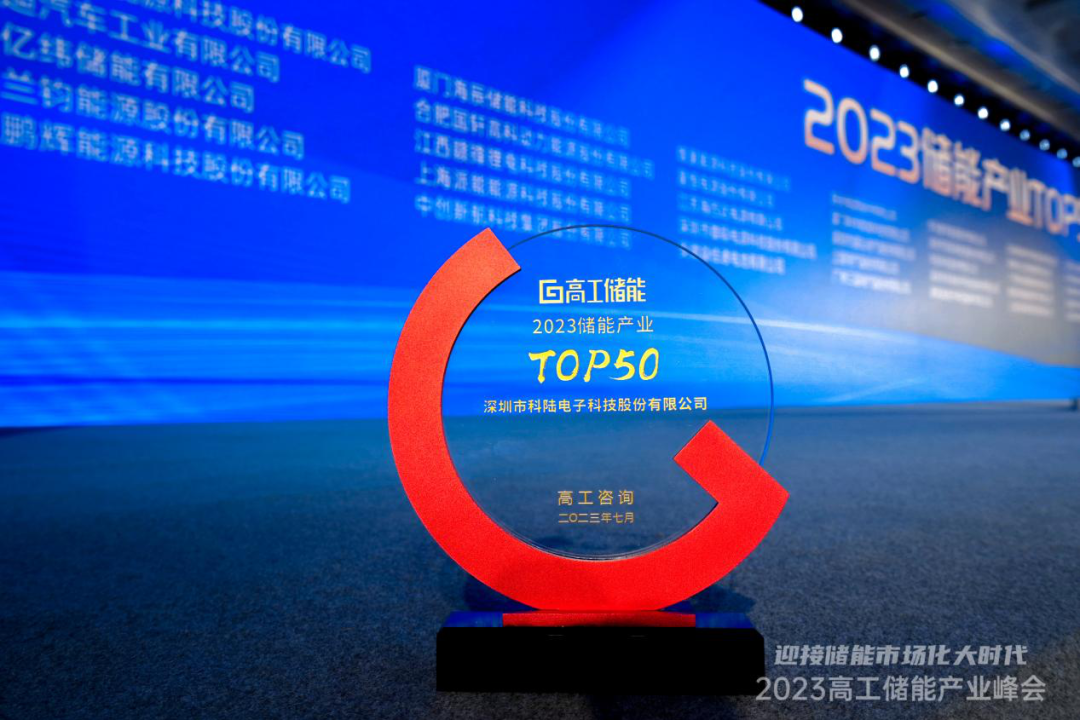 此次峰會主題為“市場化 融合化 全球化”,儲能上下游產業鏈企業領袖、行業精英匯聚一堂,共議儲能大時代。會議同期舉行2023儲能產業TOP50頒獎典禮,憑借在儲能領域的品牌影響力及領先的技術優勢,科陸榮獲“2023儲能產業TOP50”獎項,深受行業權威認可。