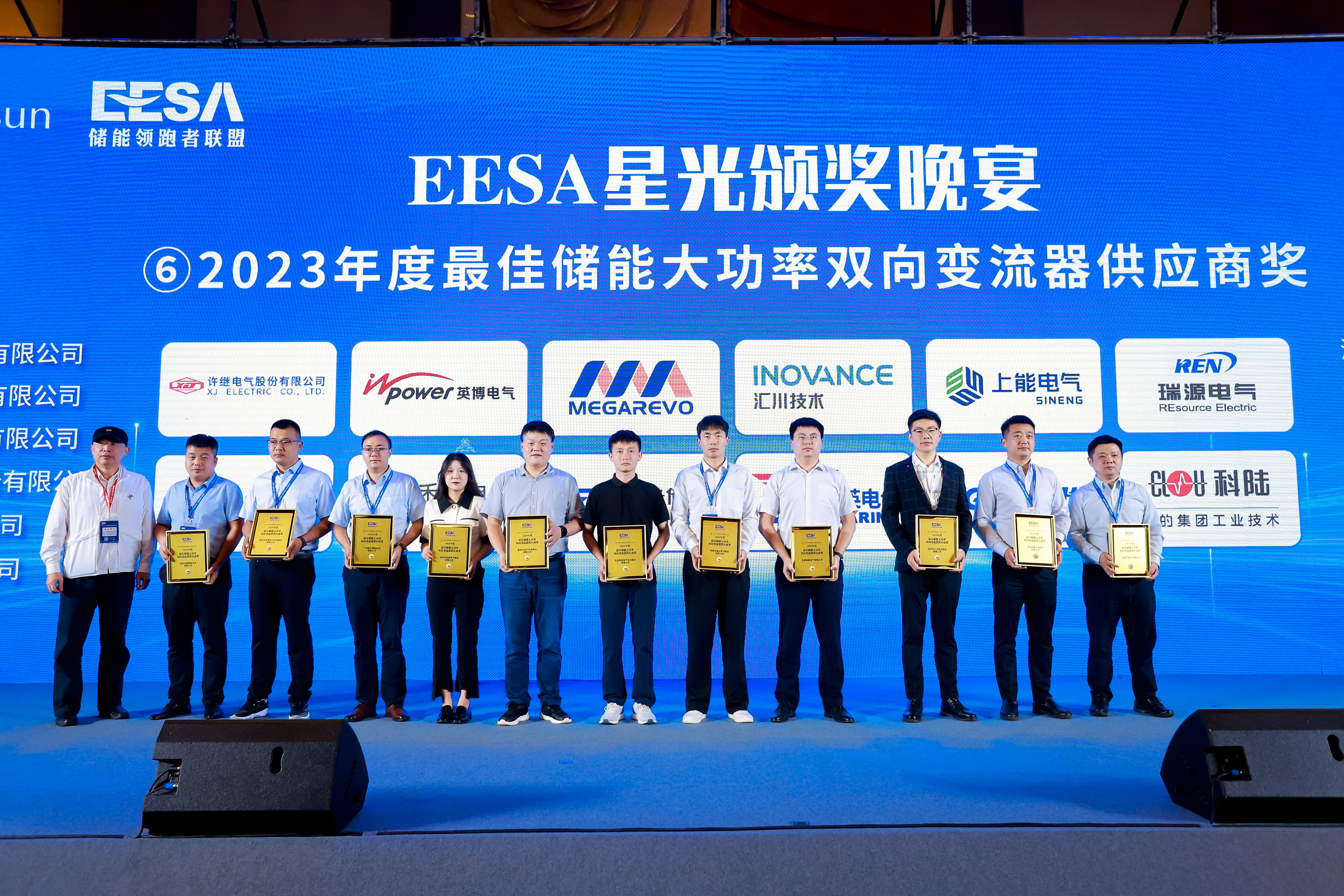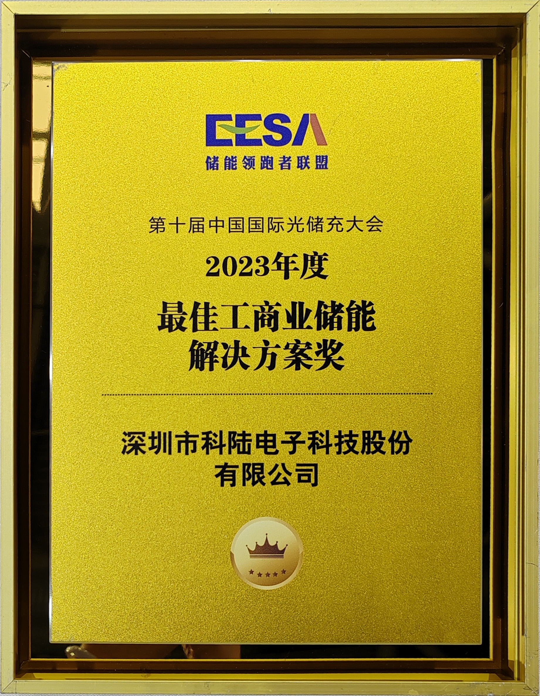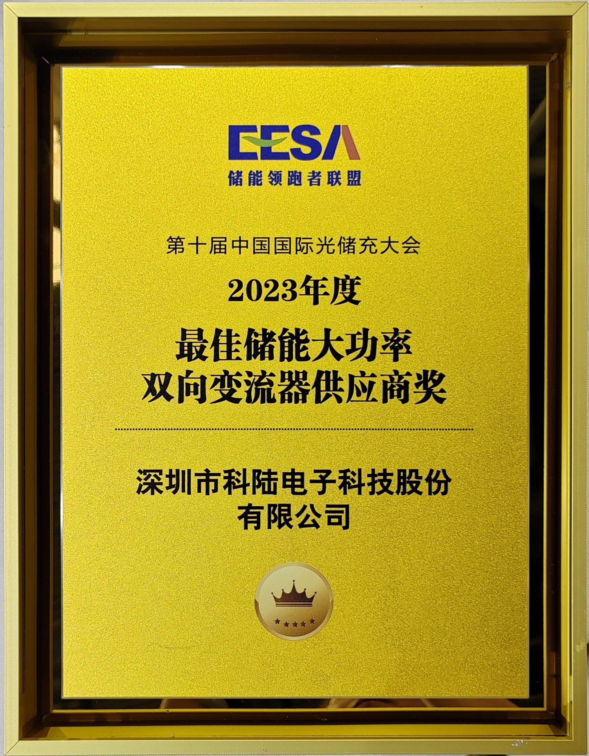 大會指出,要持續打造儲能人才高地和產業高地,進一步深化儲能行業榮譽品牌建設。經過平臺線上發布,近500家企業踴躍報名,歷時兩月激烈角逐,結合線上投票及專家評審團兩輪評分,最終評選出2023年極具行業影響力和推薦價值的優秀儲能企業與品牌產品,并在8月29日晚舉行隆重的EESA“星光獎”頒獎盛典。科陸憑借優異的表現,榮獲“2023年度最佳儲能大功率雙向變流器供應商獎”和“2023年度最佳工商業儲能解決方案獎”兩項殊榮。